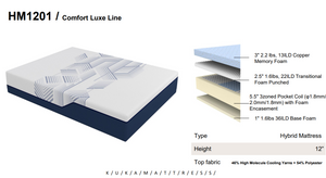 AM Comfort Lux Hybrid 12" Mattress in a Box