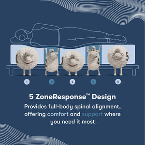 • Our 5 ZoneResponse™ Design provides full-body spinal alignment designed to offer comfort and support where you need it most.