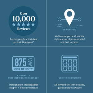 The Beautyrest Level Two Plush mattress offers an indulgent sleep experience, blending soft comfort with advanced support. With 875 Density Pocketed Coil® Technology for motion separation and individualized support, this mattress provides a plush surface for a cozy, restful night’s sleep. The Beautyrest® ActiveResponse™ Memory Foam and SurfaceTouch™ Gel Memory Foam offer targeted pressure relief and cooling benefits, making it perfect for those who desire soft comfort with extra relief for sore muscles or pressure points.