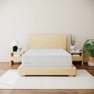 The Joybed LXP Euro Pillowtop Mattress offers the perfect balance of plush comfort and support, making it an excellent choice for side sleepers seeking a natural sleep experience—while also providing the supportive, reliable feel that back sleepers appreciate. Featuring edge-to-edge 825 series pocketed coils (Queen size), it contours to your body while maintaining proper alignment for a restful night. Three layers of breathable, natural cotton create a plush yet supportive feel, while the quilted 100% wool layer adds an extra touch of softness and helps regulate temperature for cool, dry sleep. Wrapped in a 90% GOTS-certified cotton cover, this mattress is hypoallergenic, sustainable, and completely latex-free, making it a great option for those with sensitivities.
