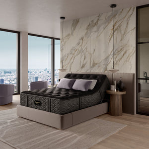 Discover where luxury meets innovation with Beautyrest Black®. Designed with Triple-Stranded Pocketed Coil® Technology, this mattress offers advanced individualized support and motion separation. Sleep Climate™ Technology works with a Micro Diamond™ Memory Foam upgrade to enhance heat transfer from the mattress, while SurfaceTouch™ Gel Memory Foam and Self-Response™ Latex upgrades conform to the body for responsive pressure relief. Experience our most advanced sleep system with Beautyrest Black®, so you can rest luxuriously.