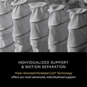 Our most advanced sleep system, featuring Triple-Stranded Pocketed Coil® Technology for maximum individualized support, plus the ultimate in motion separation, pressure relief and temperature management.