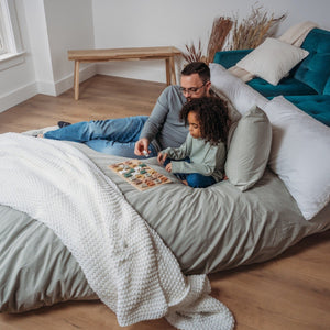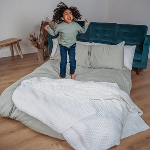 Most people think of faux leather and immediately picture something that looks and feels cheap. But the truth is, not all faux leathers are created equal. In fact, it took us a lot of trial and error to find the perfect balance of authentic-feeling leather that is also safe for machine wash and dry.