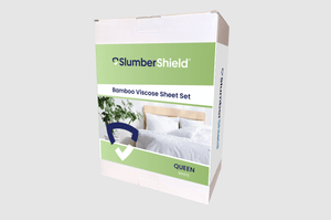 Our SLUMBERSHIELD® Bamboo Viscose Sheet Set regulates temperature and helps keep you cool and refreshed all night. The moisture wicking feature helps keep you and your mattress dry throughout your sleep. The added no slip corner elastic provides stable comfort, and is deep enough to fit 18” mattresses. The sheet set includes 1 fitted sheet, 1 flat sheet, and 1 or 2 envelope-style pillowcases with overlapping closure.